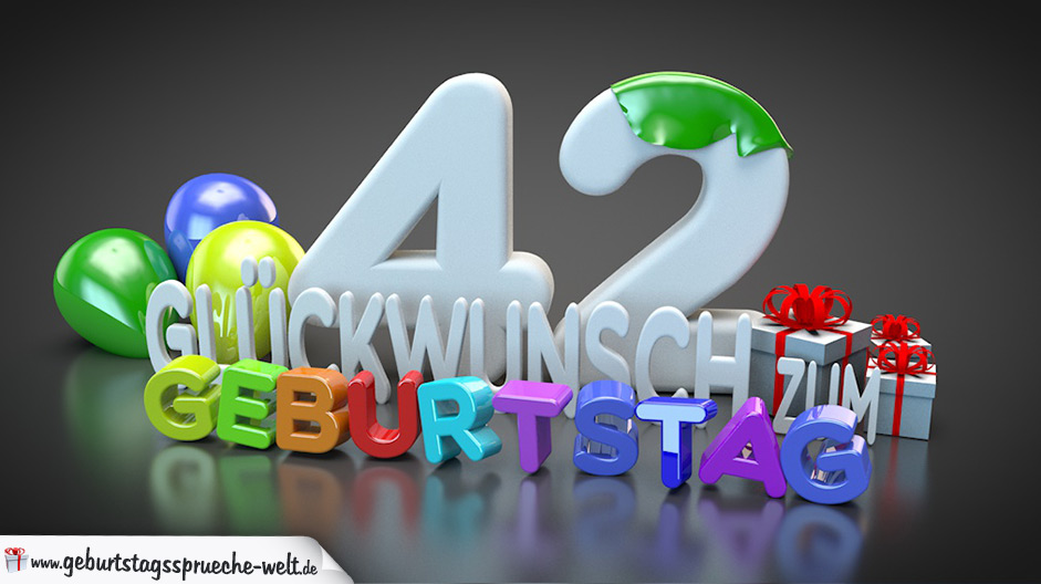 Edle Geburtstagskarte mit bunten 3D-Buchstaben zum 42. Geburtstag