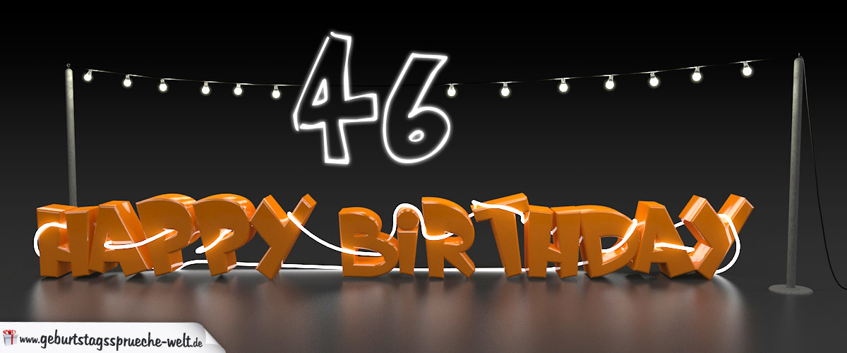 Happy Birthday – Karte zum 46. Geburtstag mit Leuchtkabel durch Schrift und Girlande