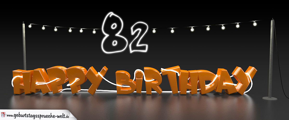 Happy Birthday – Karte zum 82. Geburtstag mit Leuchtkabel durch Schrift und Girlande