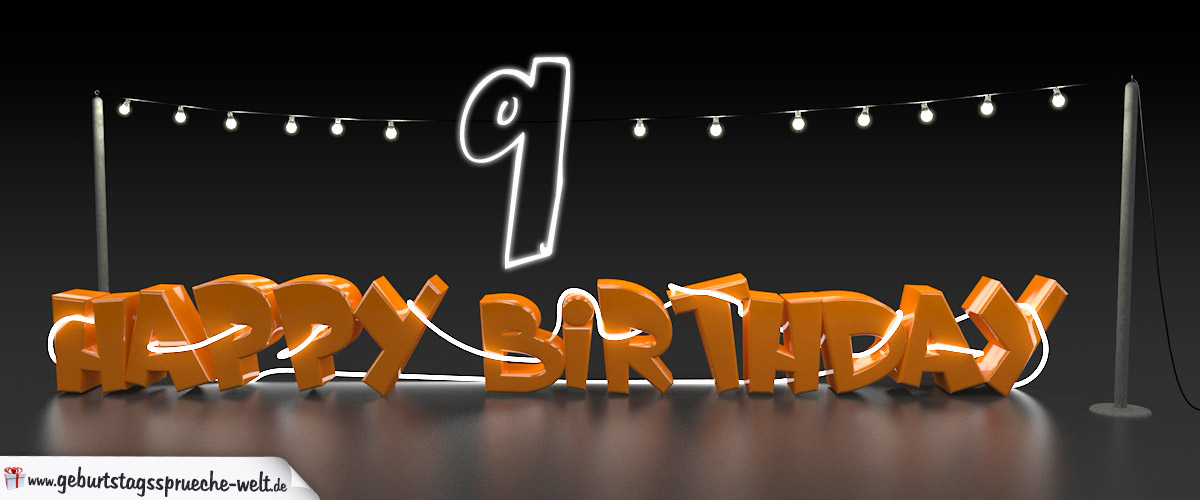 Happy Birthday – Karte zum 9. Geburtstag mit Leuchtkabel durch Schrift und Girlande