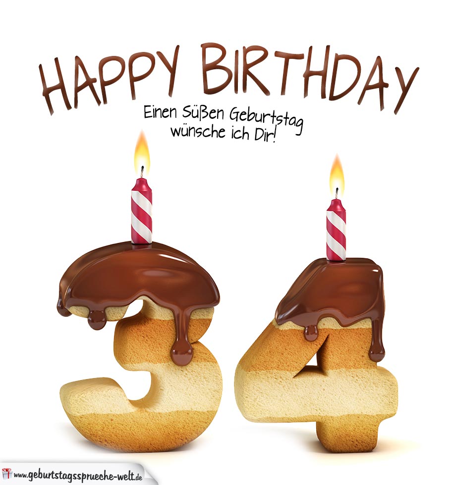 Happy Birthday in Keksschrift zum 34. Geburtstag