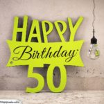 Gelber Holzschnitt Happy Birthday mit danebenängender Glühlampe
