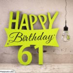 Happy Birthday aus gelb lackierten Holz gesägte Geburtstagskarte mit danebenängender Glühlampe.